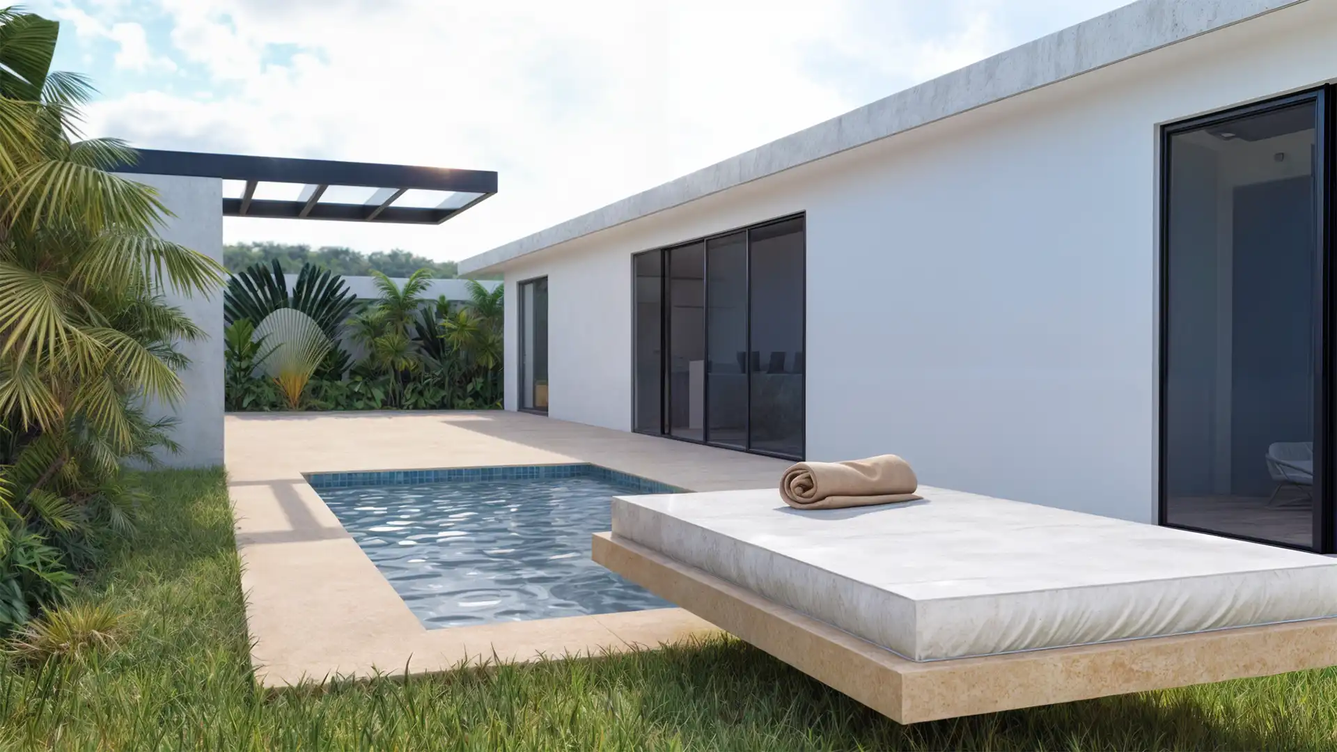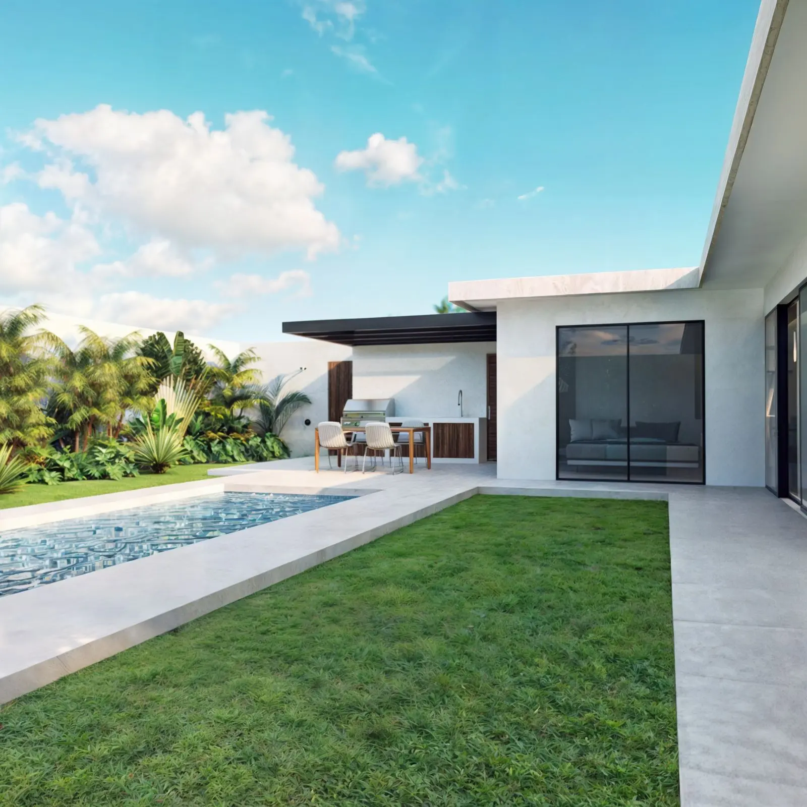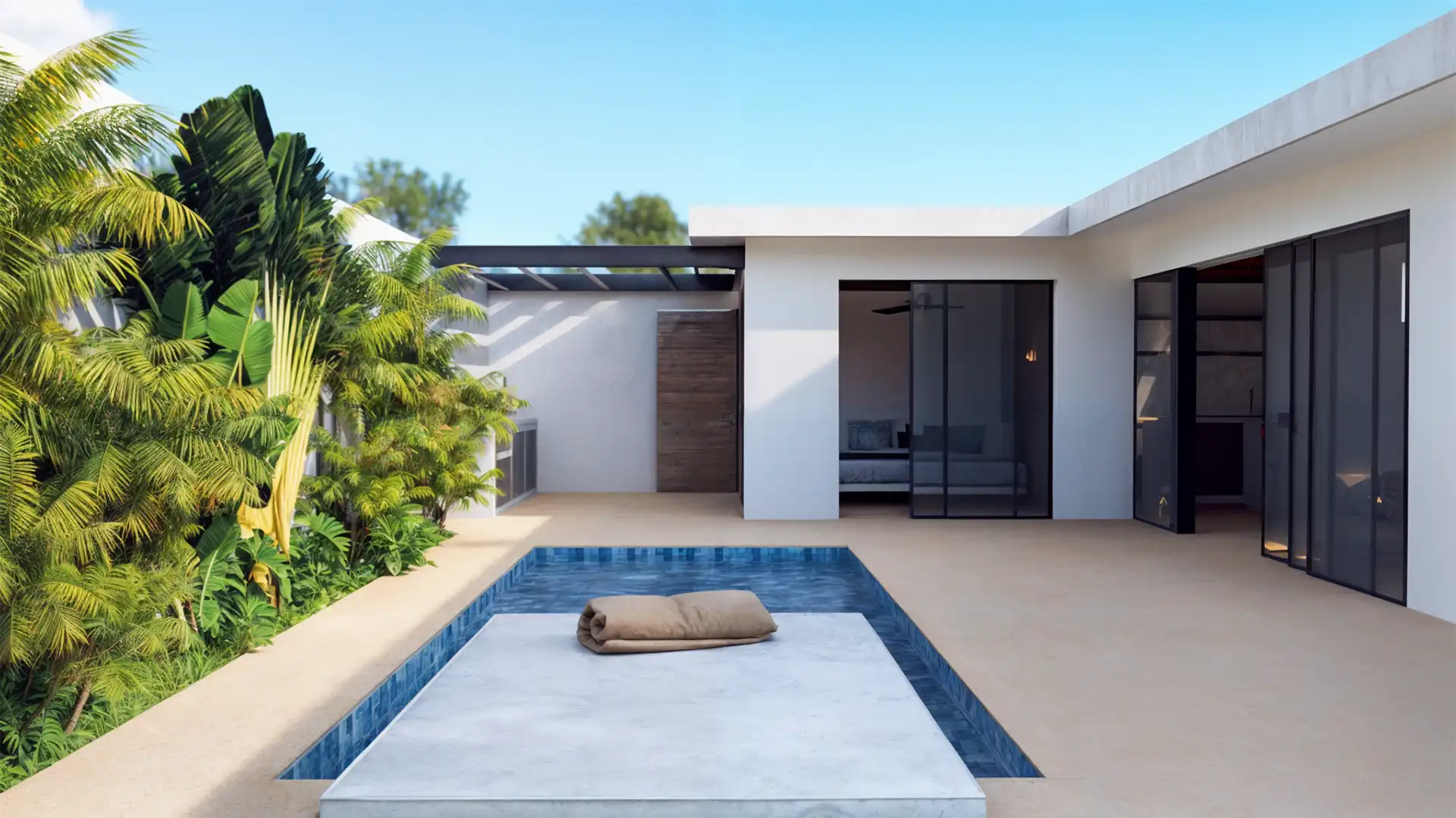 Our villas are inspired by Balinese architecture, characterized by clean lines and a seamless design that fosters a harmonious living environment. To elevate this concept, we have incorporated subtle European elements, creating a distinctive and highly appealing product poised for success in the rental market. The combination of premium materials, including concrete, steel, and teak wood, results in a truly striking finish.