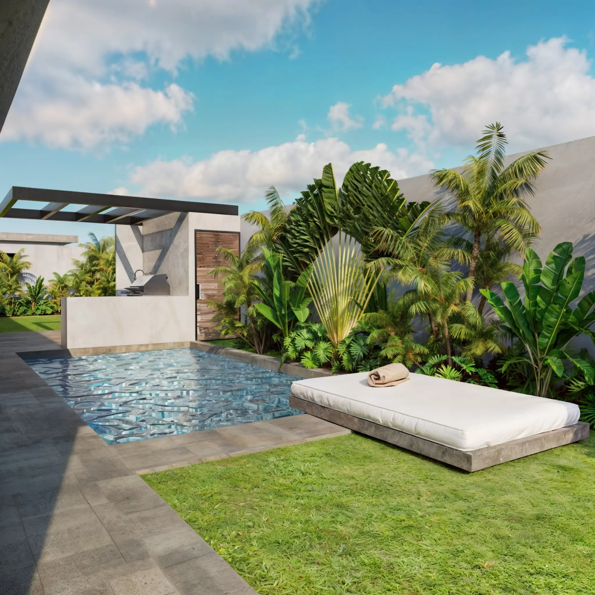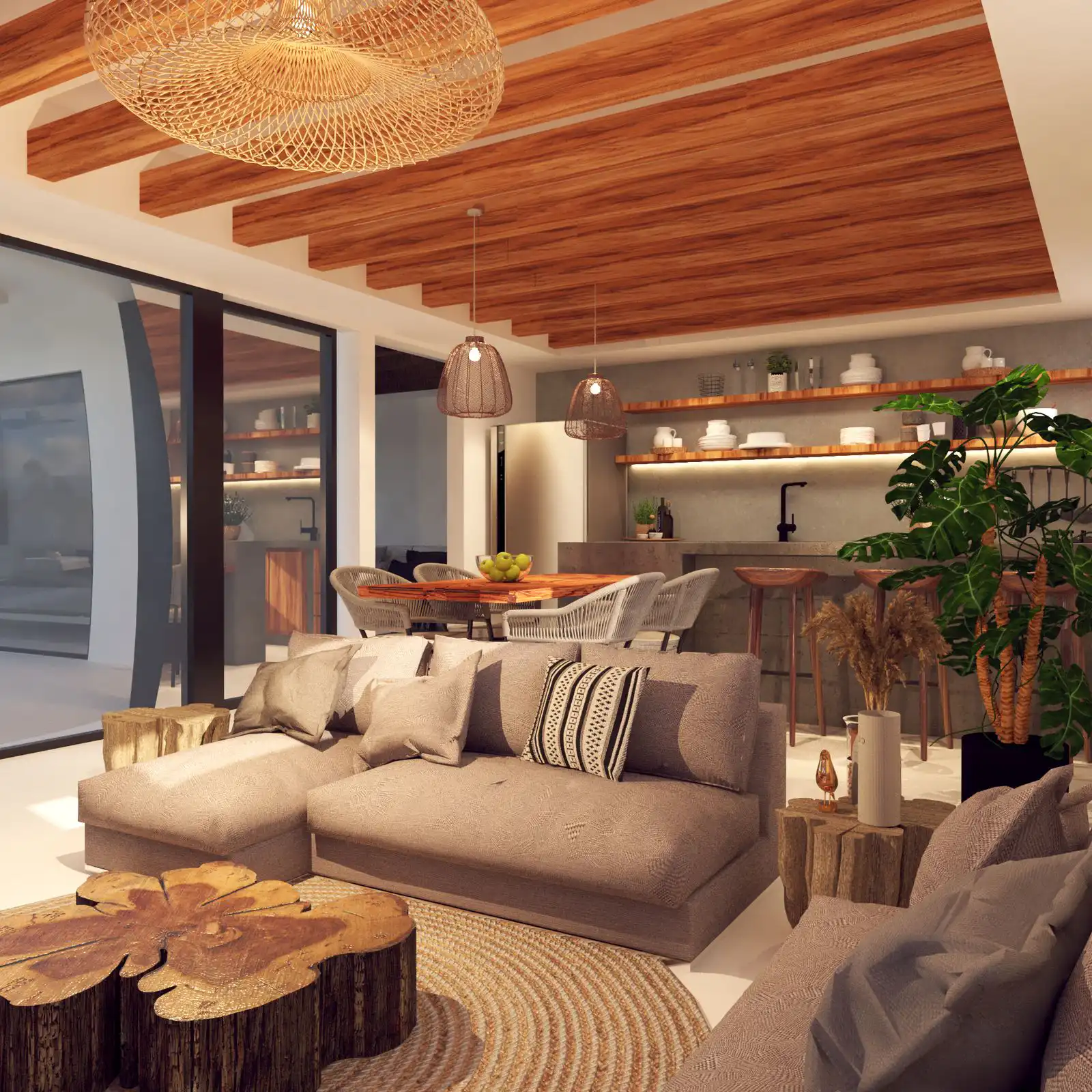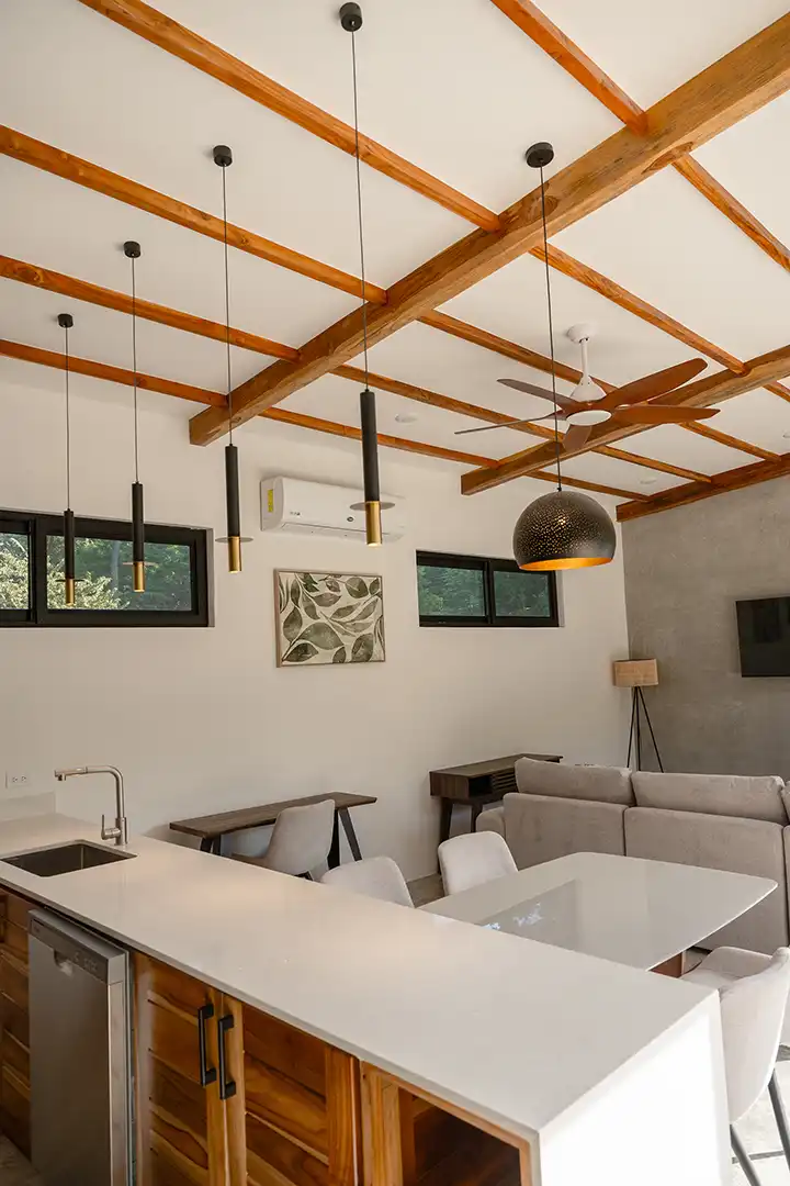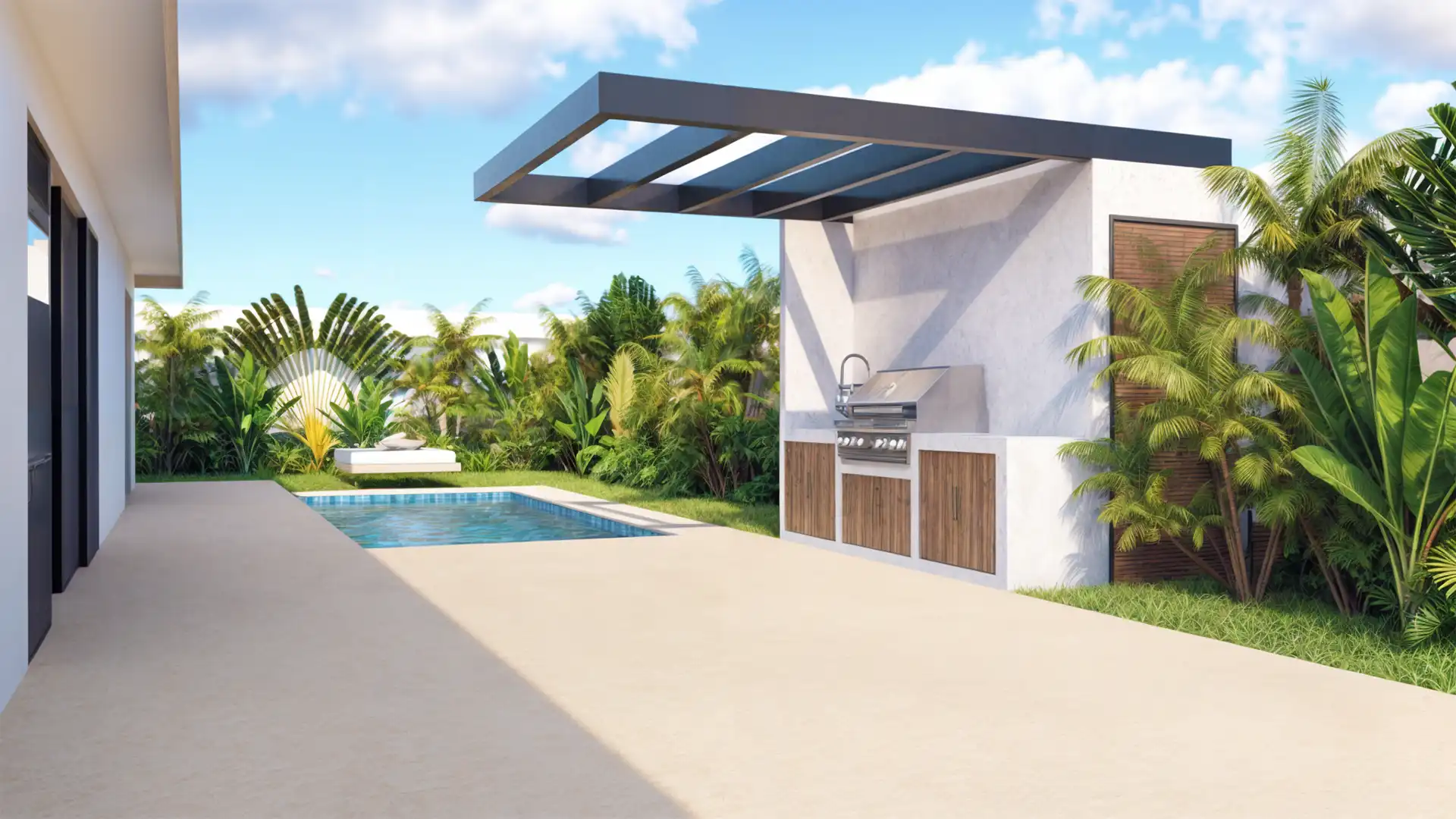 Our villas are inspired by Balinese architecture, characterized by clean lines and a seamless design that fosters a harmonious living environment. To elevate this concept, we have incorporated subtle European elements, creating a distinctive and highly appealing product poised for success in the rental market. The combination of premium materials, including concrete, steel, and teak wood, results in a truly striking finish.