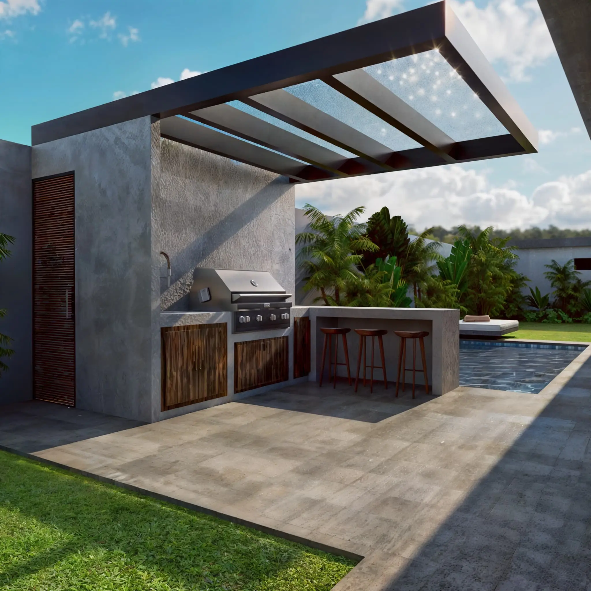 - Optional Covered Outdoor Kitchen that also serves as a private terrace for one of the bedrooms—an ideal spot to enjoy your morning coffee.