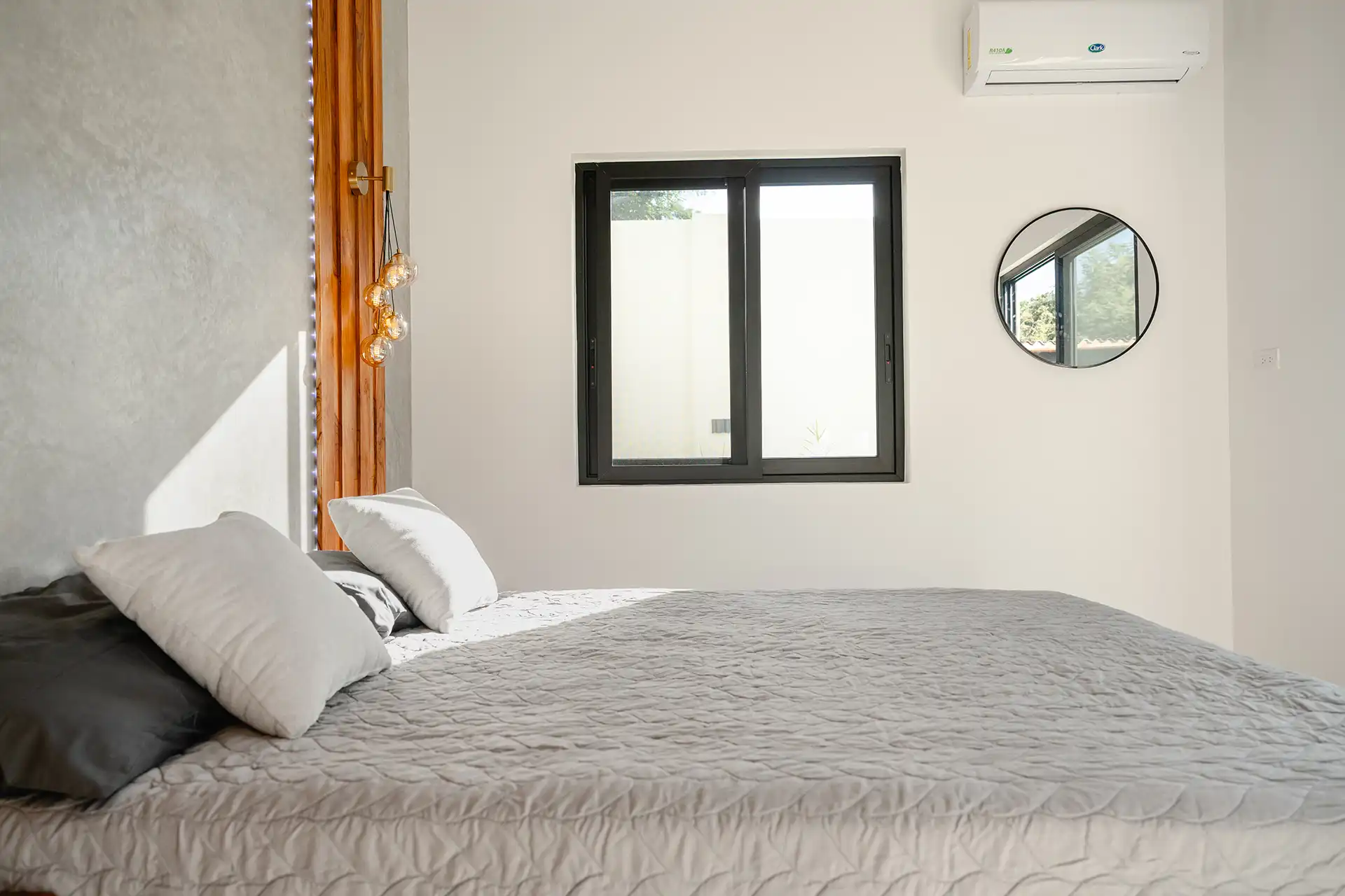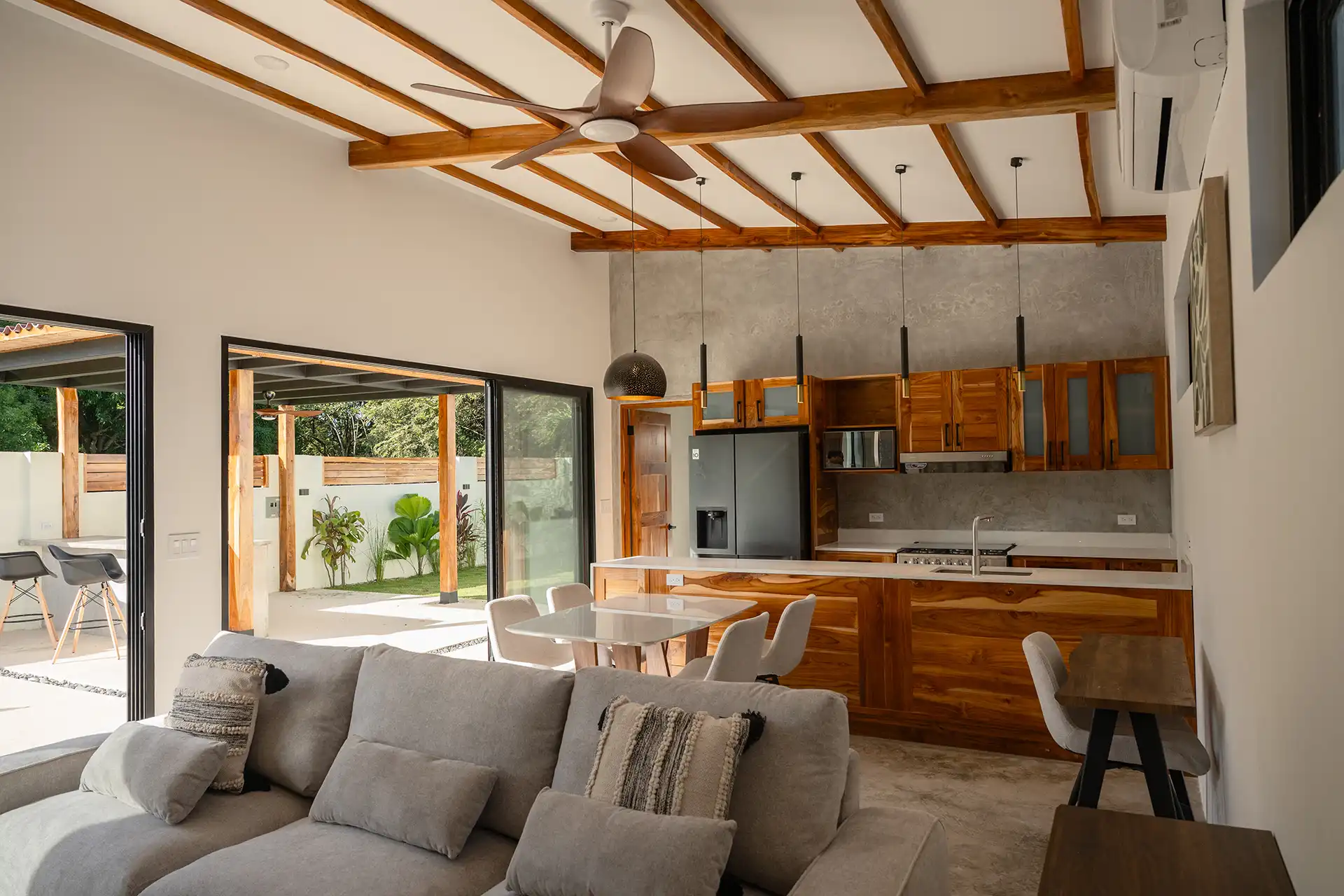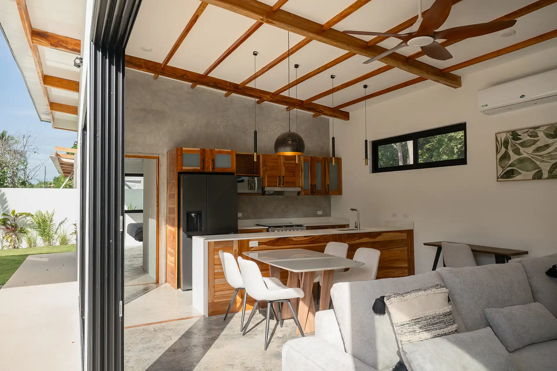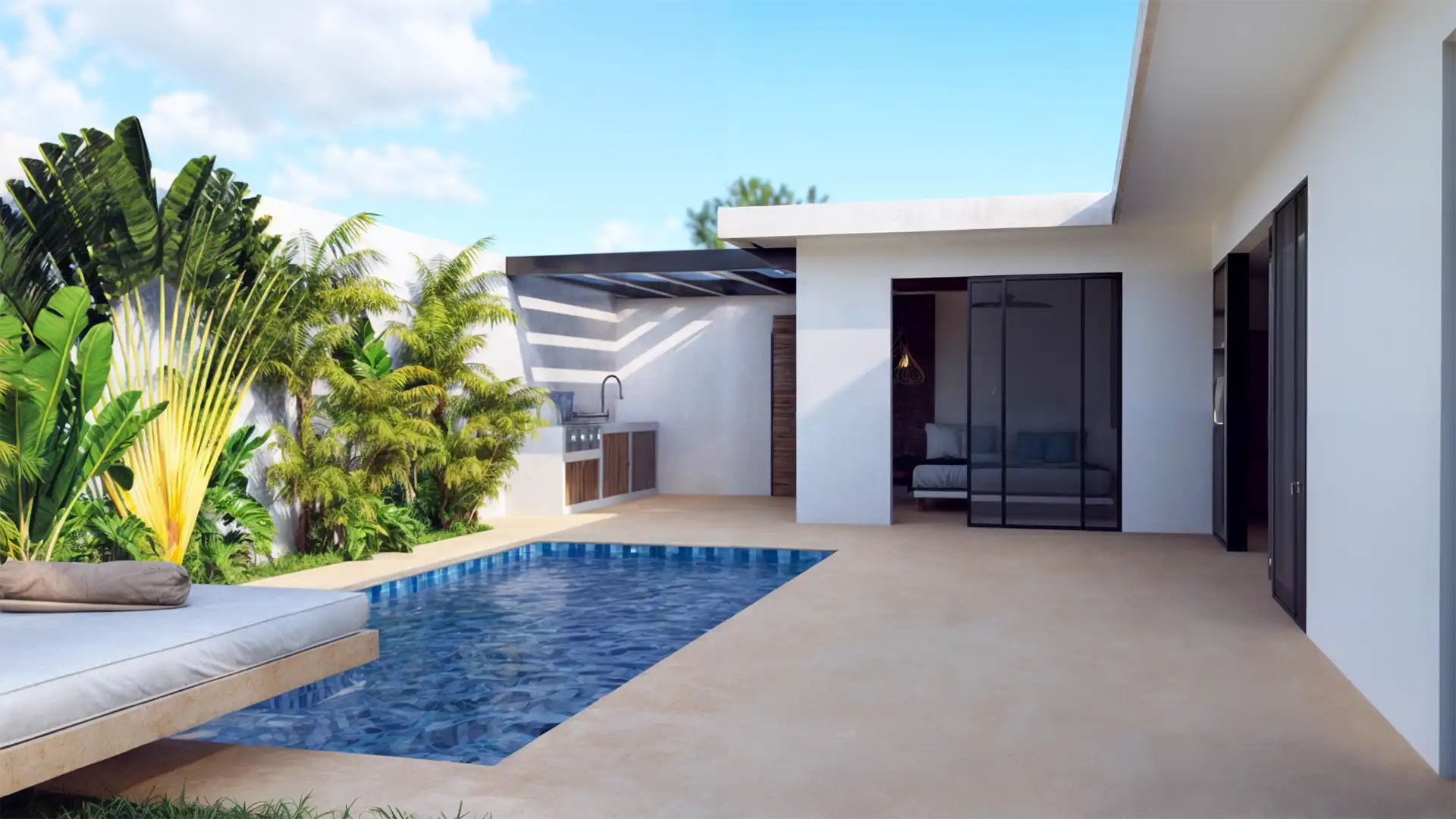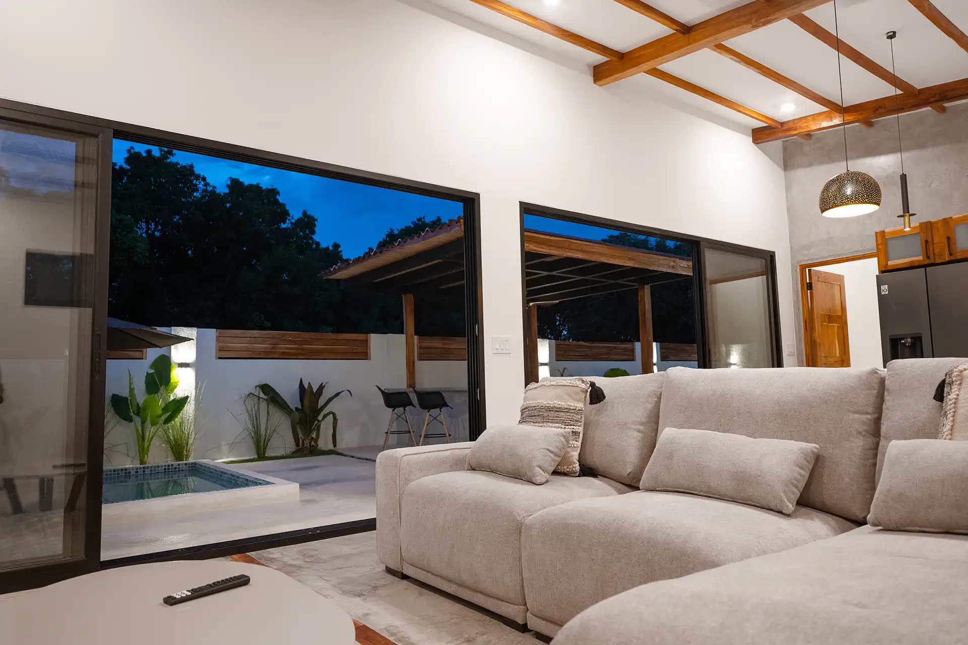 - Two Bedrooms each accommodating a king-size bed, with windows overlooking the private pool, plus a spacious kitchen and living area.