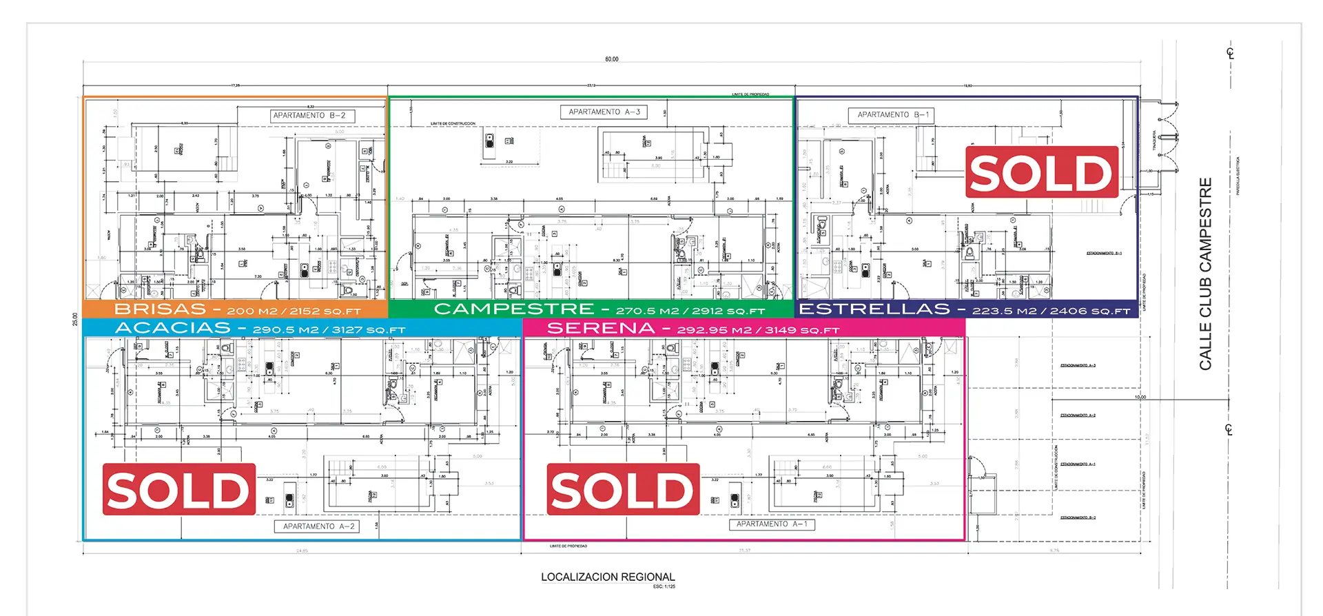 - Owner’s Residence of 87 m², (937 ft²), plus a minimum of 128 m² (1,378 ft²) up to 173 m² (1,862 ft²) of outdoor oasis.